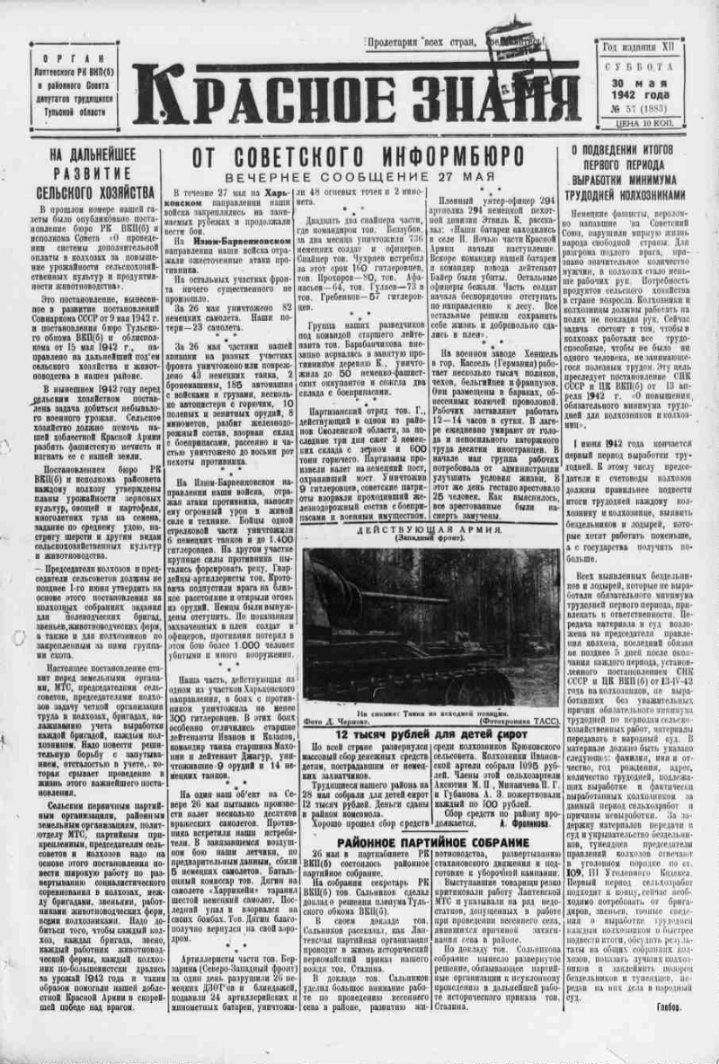 Красное знамя : орган Лаптевского РК ВКП(б) и районного Совета депутатов трудящихся Тульской области