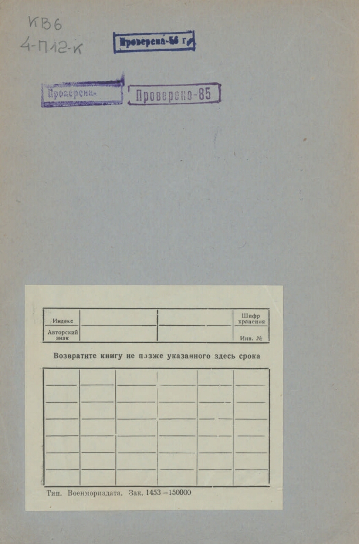 Источник электронной копии: ПБ Место хранения оригинала: ЦВМБ |
