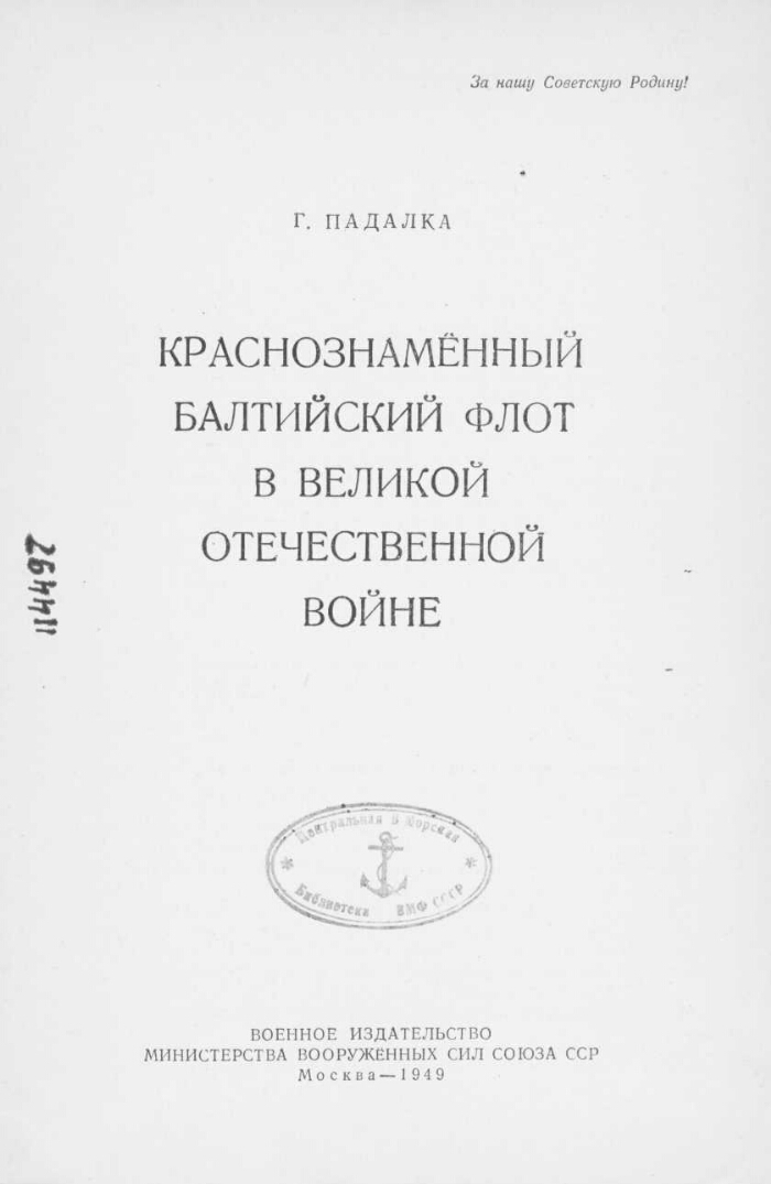 Краснознаменный Балтийский флот в Великой Отечественной войне / Г. Падалка. - М. : Воениздат, 1949. -48 с. ; 22. -