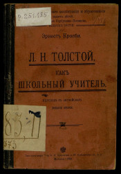 Л. Н. Толстой как школьный учитель : перевод с английского : с дополнениями из писем Л. Н. Толстого о воспитании / Эрнест Кросби. - Издание 2-е. -Москва : типо-литография товарищества И. Н. Кушнерев и К°, 1908. -80 с. ; 20 см. - (Библиотека "Свободного воспитания и образования"под ред. И. Горбунова-Посадова ; Вып. 3)