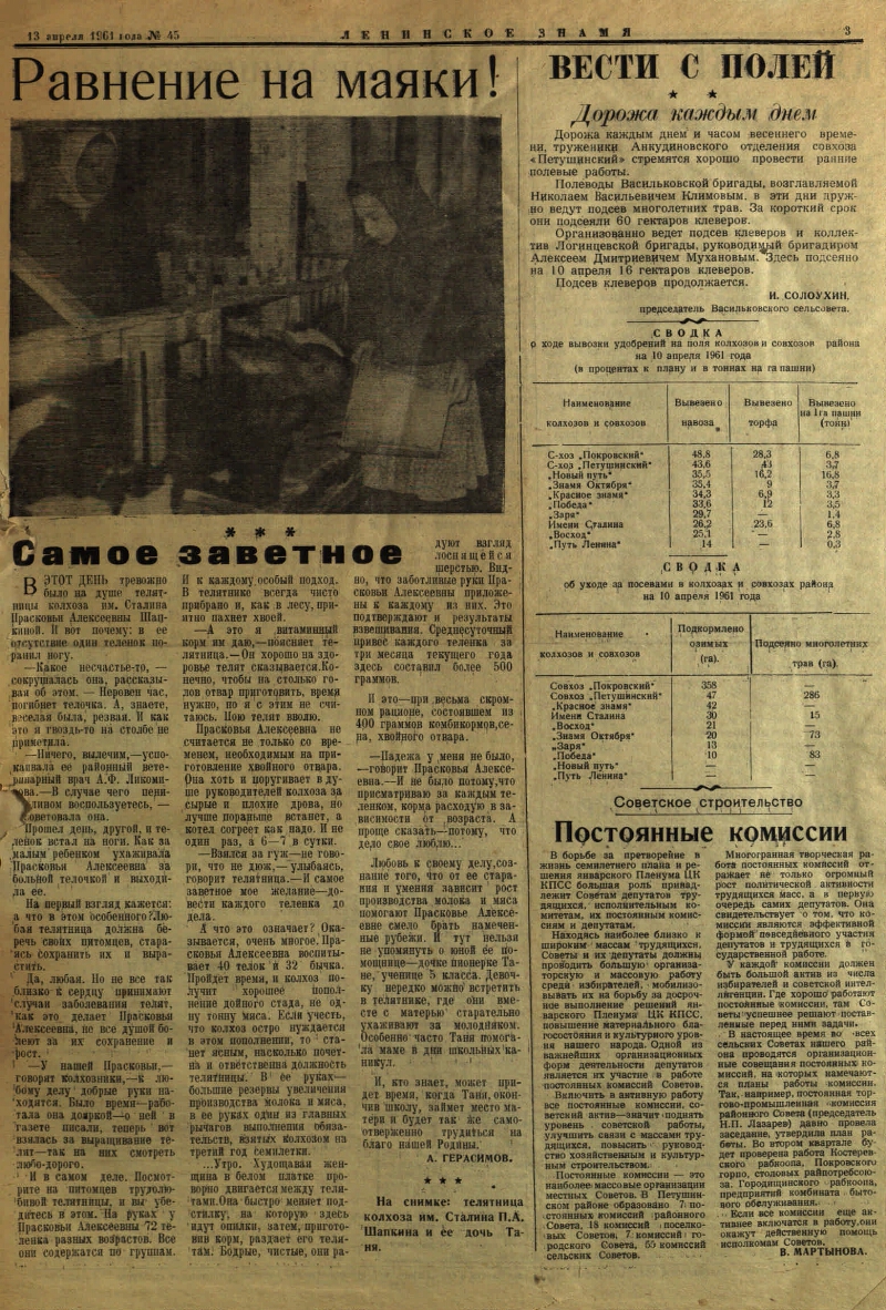 Описание Ленинское знамя : орган Петушинского Райкома КПСС и Райсовета депутатов трудящихся . - Петушки : тип. Владимир. Облполиграфиздата , [1931]- 1961, № 45 (3210) (12 апр.). - 4 с. . 1. Периодическая печать -- СССР. 2. Петушинский район (Владимирская область) -- История. ББК 63.3(2Рос-4Вла)632я51 Источник электронной копии: Владимирская ОУНБМесто хранения оригинала: Владимирская ОУНБ Издательство тип. Владимир. Облполиграфиздата Объект в каталогах История В коллекциях Отечественная периодика в фонде Президентской библиотеки → Газеты → Л → Ленинское знамя : орган Петушинского Райкома КПСС и Райсовета депутатов трудящихся. Петушки. → 1961