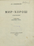 Мир - хорош : (стихотворения) / Дм. Семеновский ; с предисл. Александра Блока. - Москва : Артель писателей "Круг", школа ФЗУ при 1-й Образц. тип. Госиздата, 1927. -92, [2] с., [2] с. объявл. ; 17. - (Библиотека пролетарских писателей). - Из библиотеки Л. Богданова. . -2000 экз.