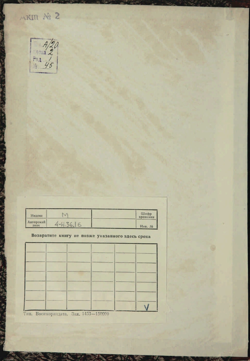 Источник электронной копии: ПБ Место хранения оригинала: ЦВМБ