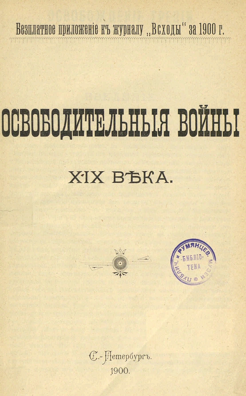 Описание rus Освободительные войны XIX века .- С.-Петербург : [Тип. А. Е. Колпинского] , 1900 .- 135, 119 с. : ил. ; 25 см . ББК 63.3(0)5-68 Источник: РГБХранение: РГБ Издательство [Тип. А. Е. Колпинского] Объект в каталогах Новое время (XVI в.