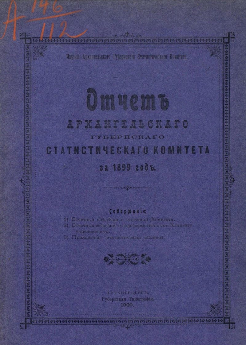 Описание Архангельский губ. статистический комитет Отчет Архангельского губернского статистического комитета... .- Архангельск , [1866]-1914 .- 18-31 см rus за 1899 г. .- 1900 .- [2], 14, 159 с. . ББК 63.3(2)5-334я5ББК 63.3(2)531-334я5ББК 65.03(2)522-05я5 Источник: РГБХранение: РГБ Издательство Губернская типография Объект в каталогах Россия в кон. XVII в. Россия II пол. 90-х гг. XIX в. Экономика. Экономические науки