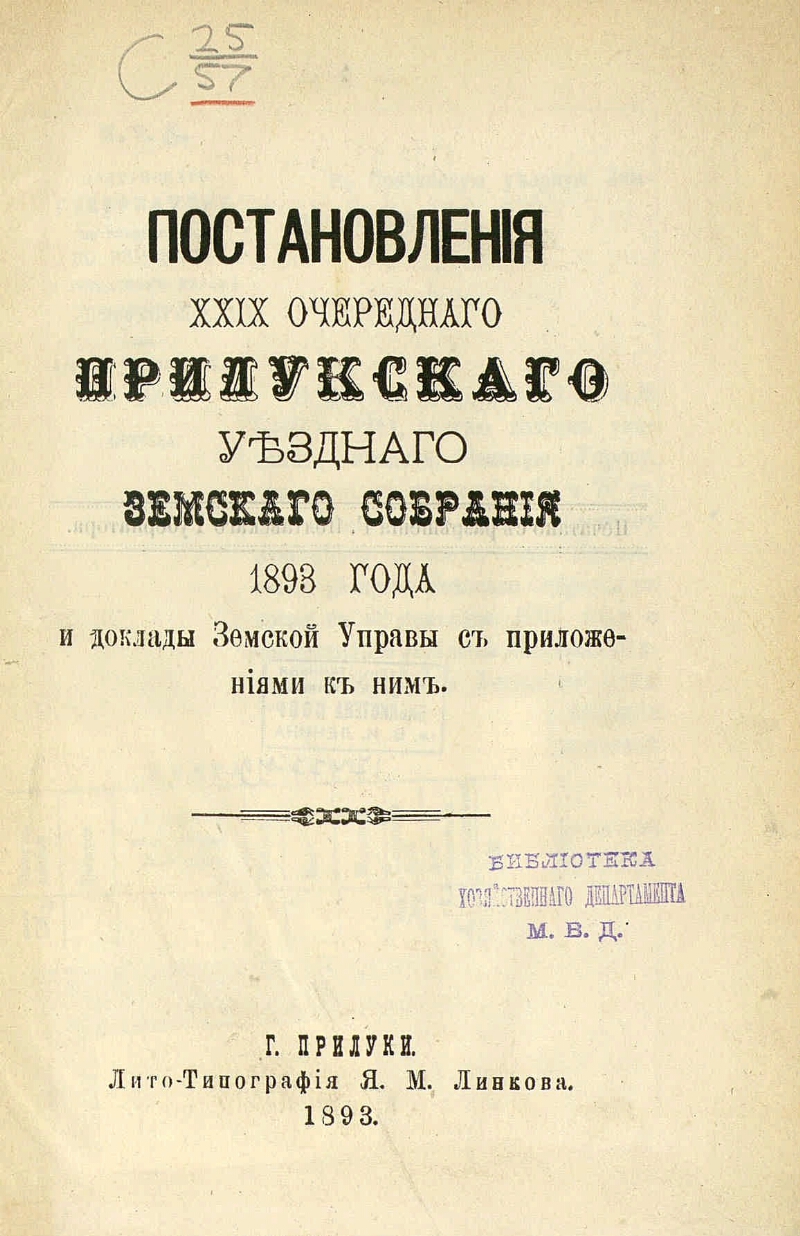 XXIX очередного ... 1893 года. - Прилуки : Лито-тип. Я. М. Линкова, 1893. - 282 с.