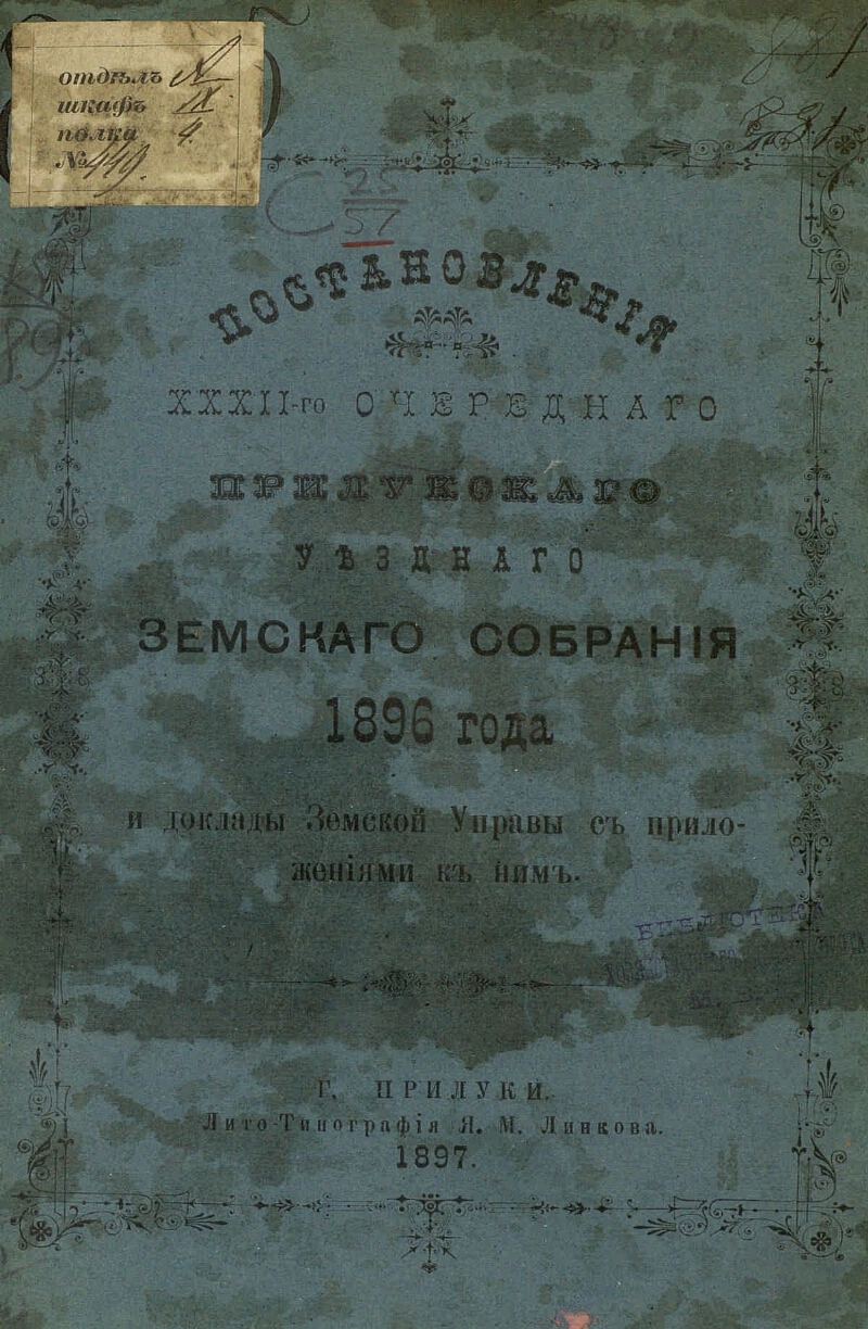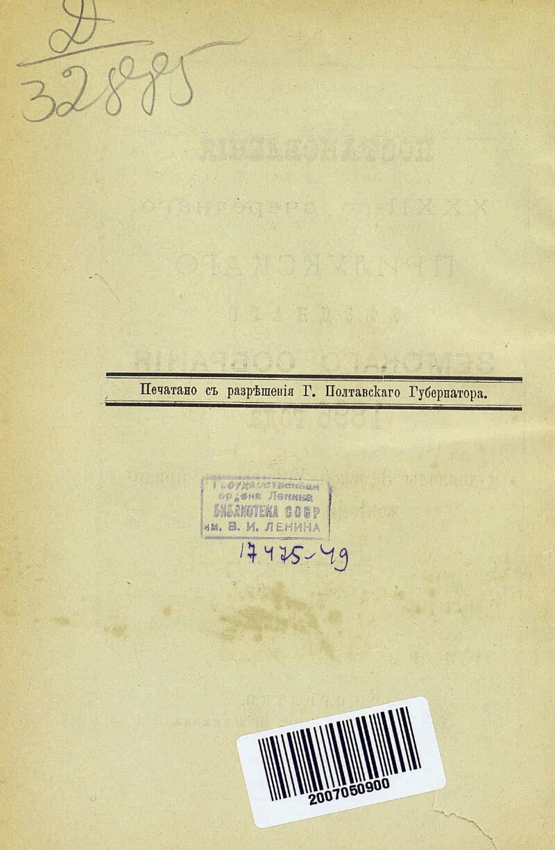 XXXII-го очередного ... 1896 года. - Прилуки : Лито-тип. Я. М. Линкова, 1897. - 523 с. - Печать: Библиотека хозяйственного департамента М. В. Д.