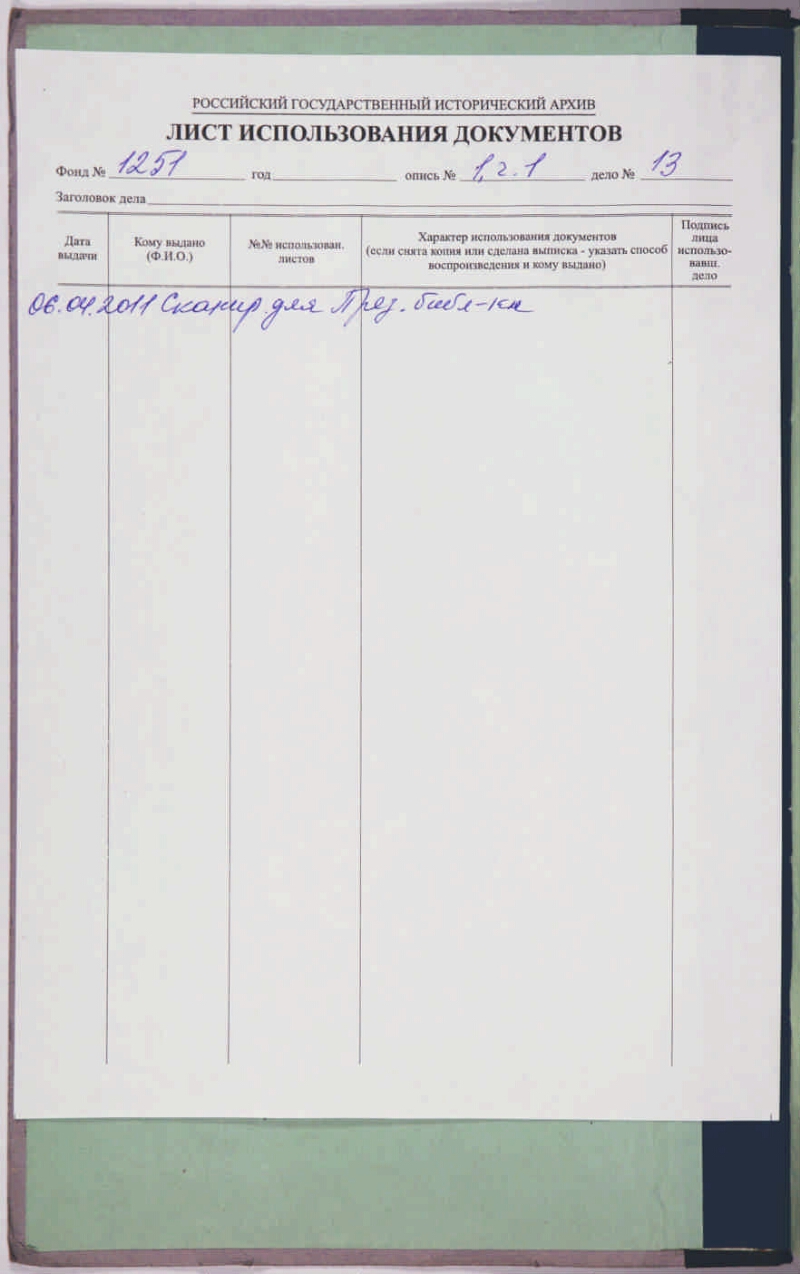 | Примечание | Архивный шифр: Ф. 1251. Оп. 1. Ч. 1. Д. 13 |