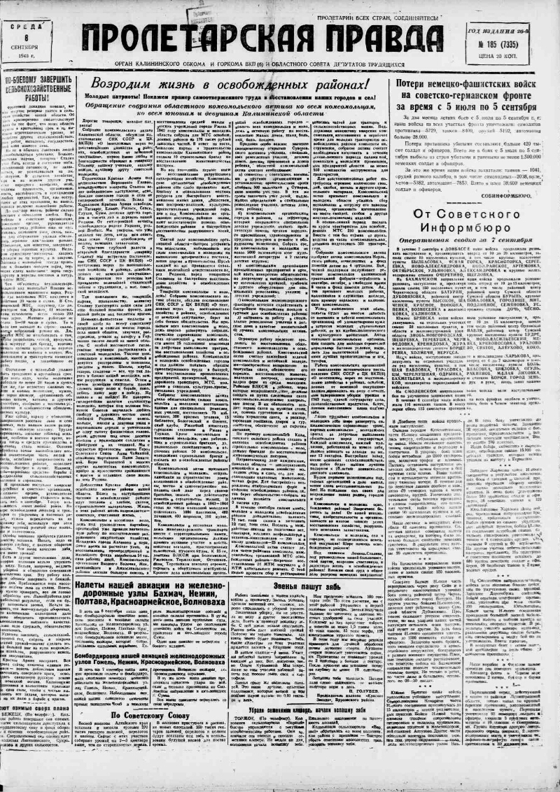 1943, № 185 (7335) (8 сент.). - 2 с.
