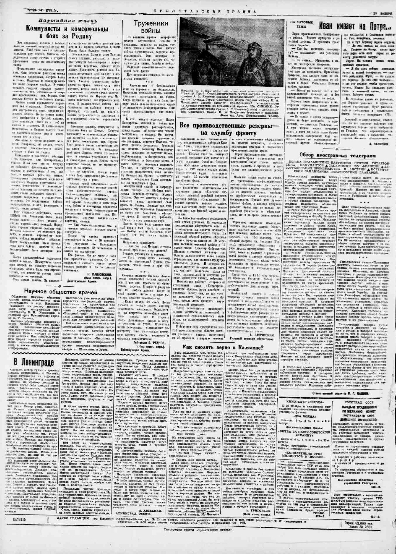 1943, № 241 (7391) (28 нояб.). - 2 с.