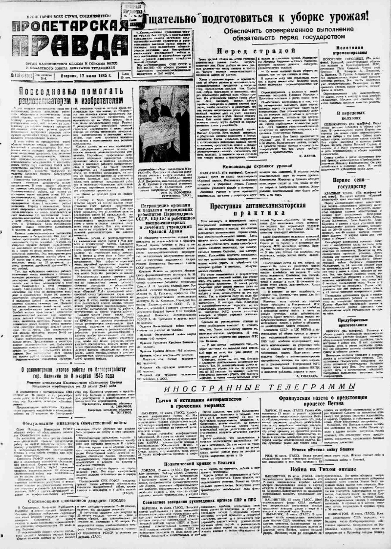 Пролетарская правда. 1945, № 138 (7806) (17 июля)