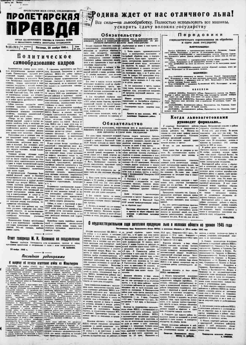 Пролетарская правда : орган Калининского обкома и горкома ВКП(б) и областного Совета депутатов трудящихся