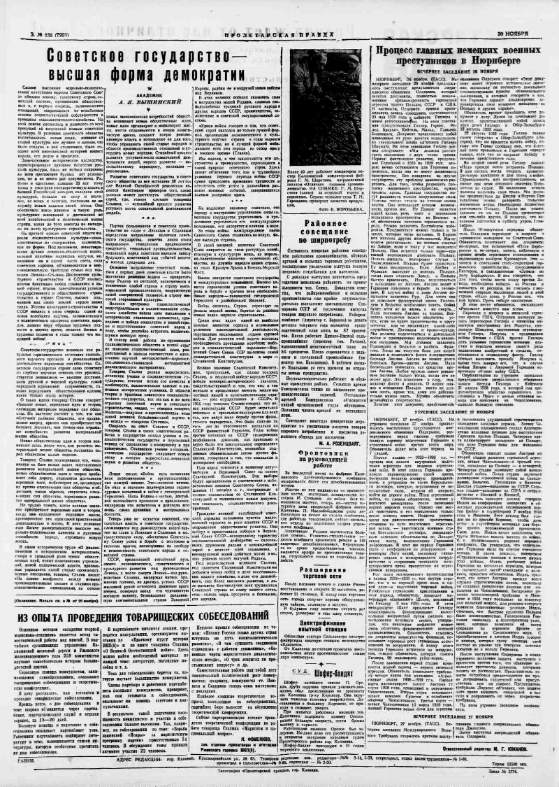 1945, № 235 (7903) (30 нояб.). - 2 с.