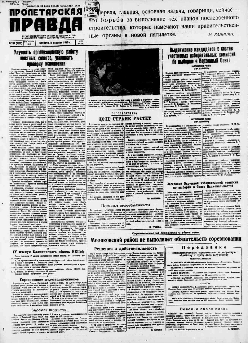 Пролетарская правда : орган Калининского обкома и горкома ВКП(б) и областного Совета депутатов трудящихся