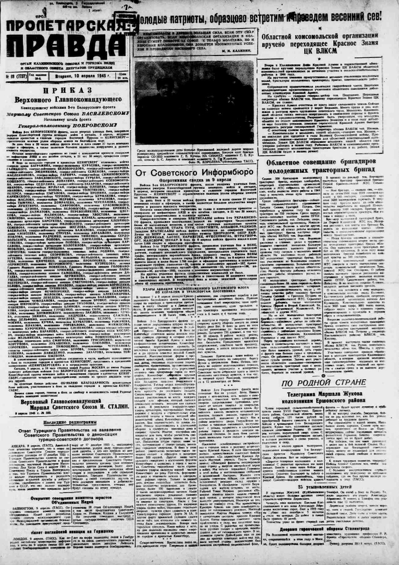 1945, № 69 (7737) (10 апр.). - 2 с.
