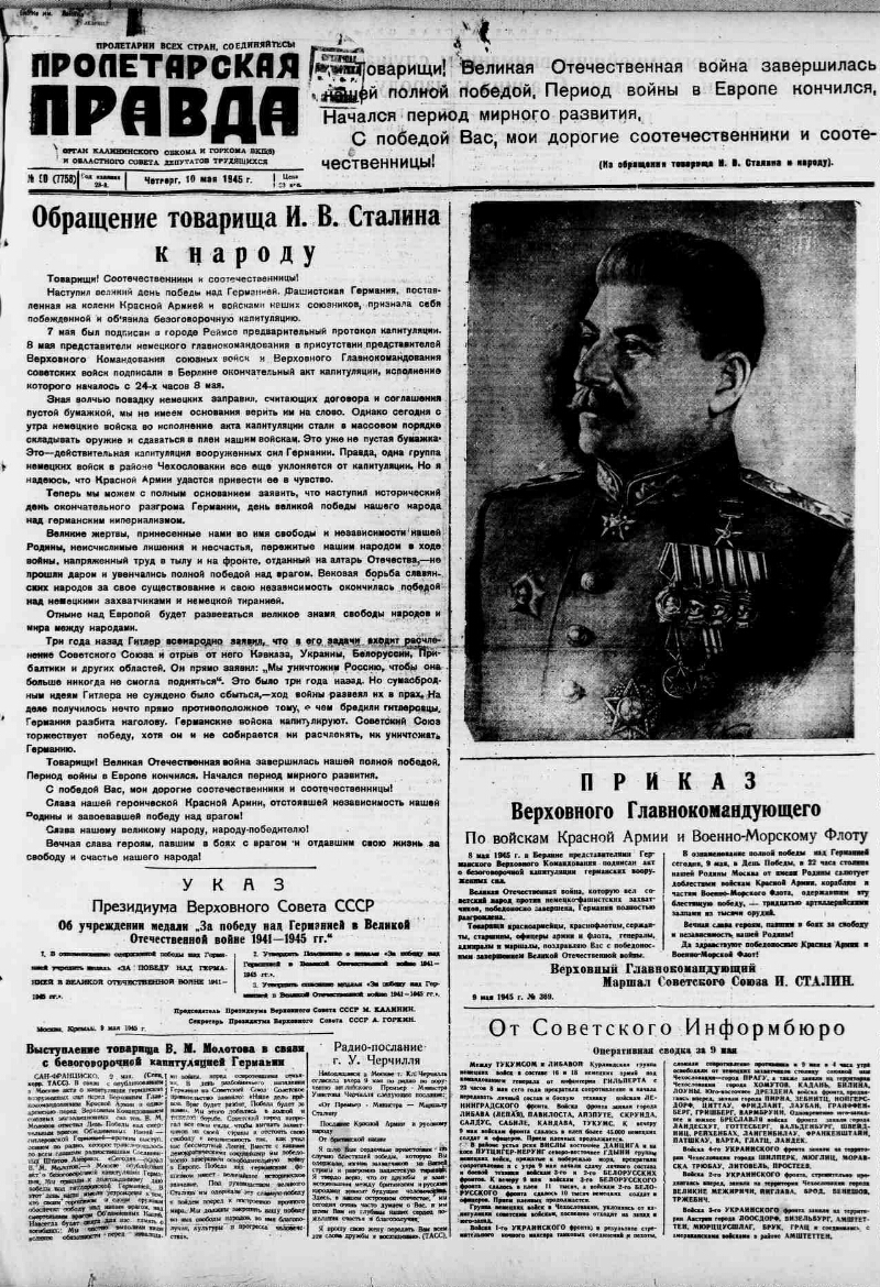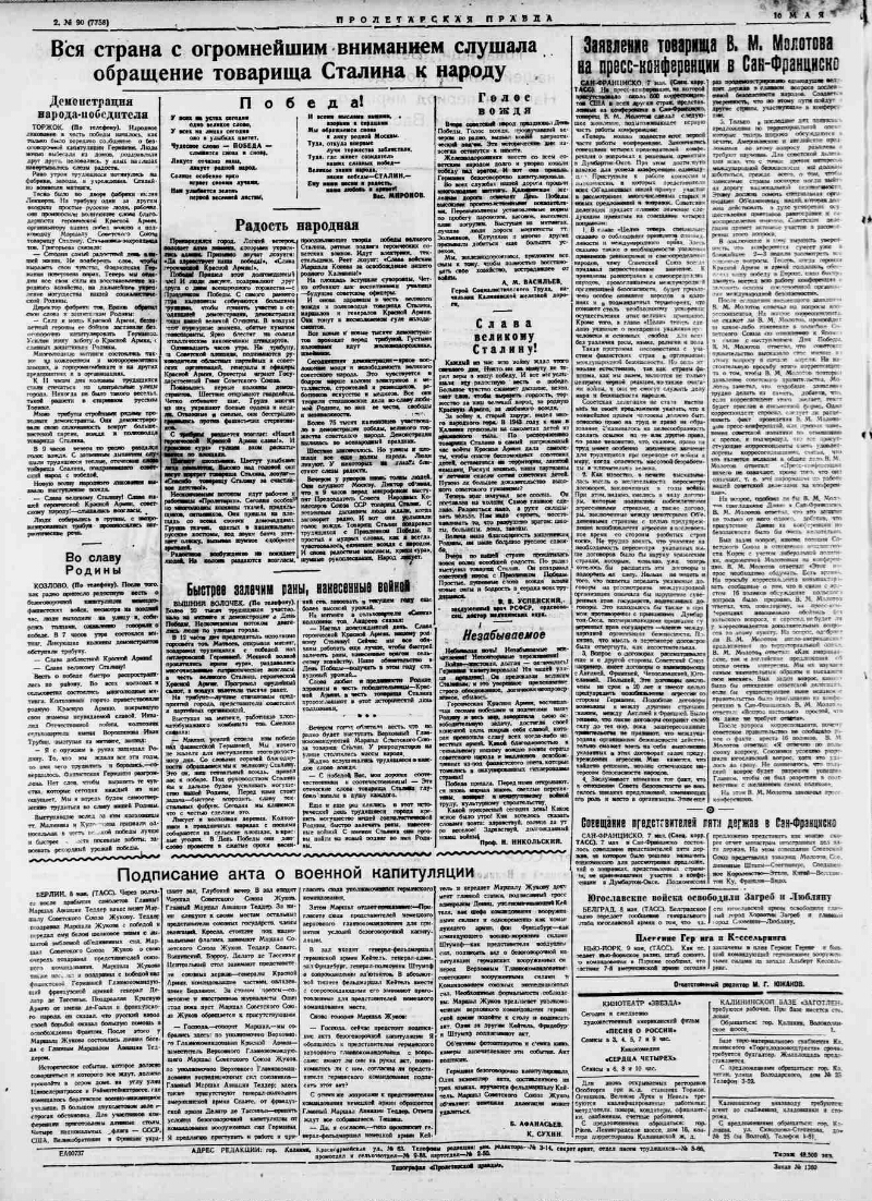 1945, № 90 (7758) (10 мая). - 2 с.