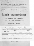 Ранние славянофилы : А. С. Хомяков, И. В. Киреевский, К. С. и И. С. Аксаковы / Сост. Н. Л. Бродский. - Москва : т-во И. Д. Сытина, 1910. - LXVI, 206 с. ; 21. - (Историко-литературная библиотека / Под ред. А. Е. Грузинского, при ближ. участии Н. Л. Бродского, Н. М. Мендельсона и Н. П. Сидорова ; Вып. 5) . - Библиогр.: с. 203-206