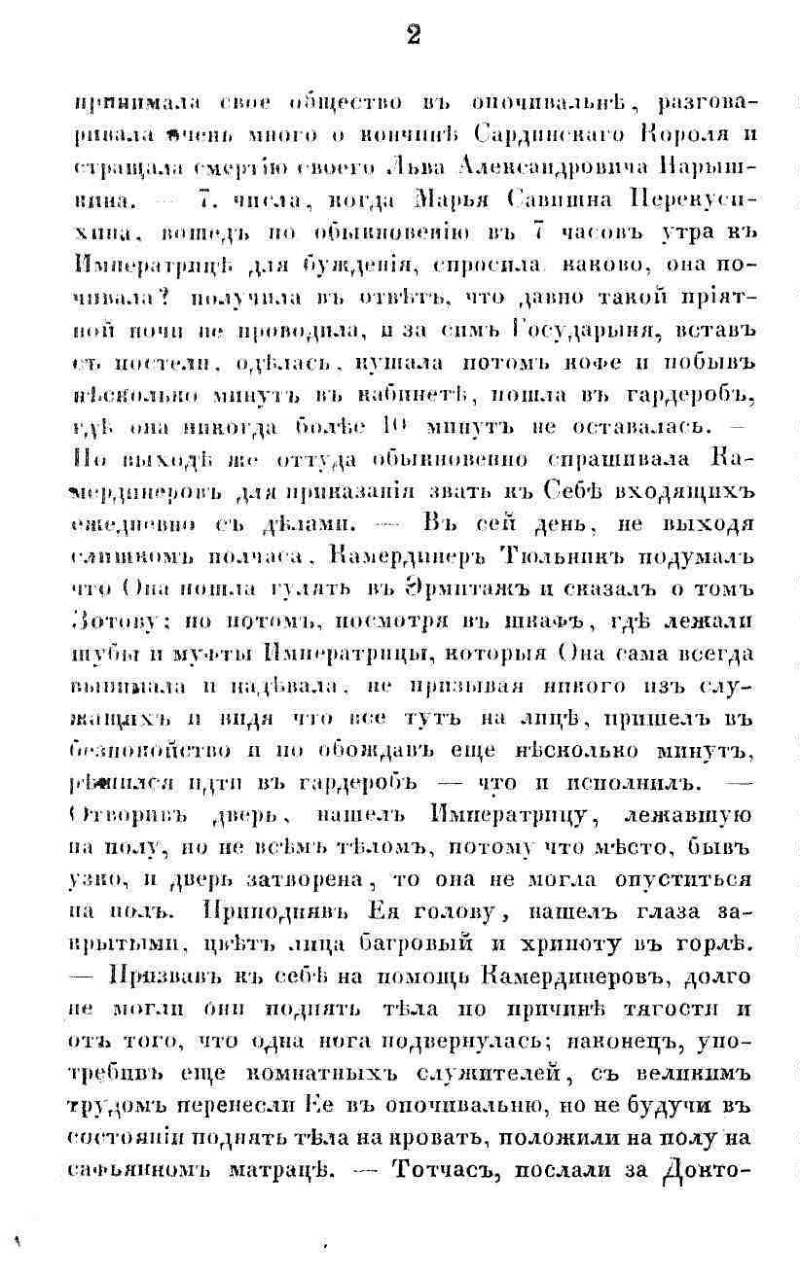 Последний день жизни имп. Екатерины II и первый день царствования имп. Павла I : Отрывок из записок гр. Ростопчина. - Paris [и др.] : A. Franck [и др.], 1858 (Лейпциг: ) . - [1], 18 с. ; 22. - (Русский заграничный сборник ; [Ч. 1. Тетр.] 5) . - Описано по шмуцтит. На тит. л. только подзаг.
