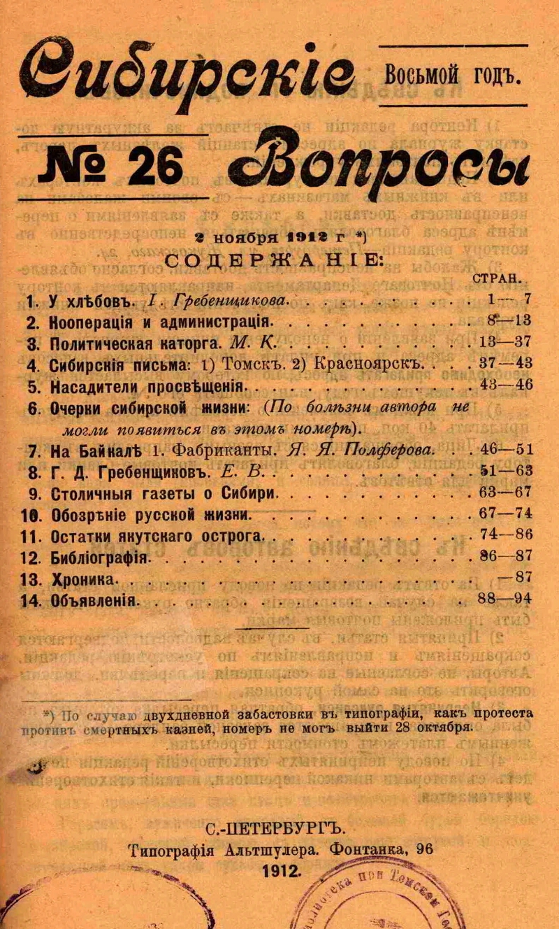 1. Общественно-политические журналы -- Сибирь -- 1905-1913. |