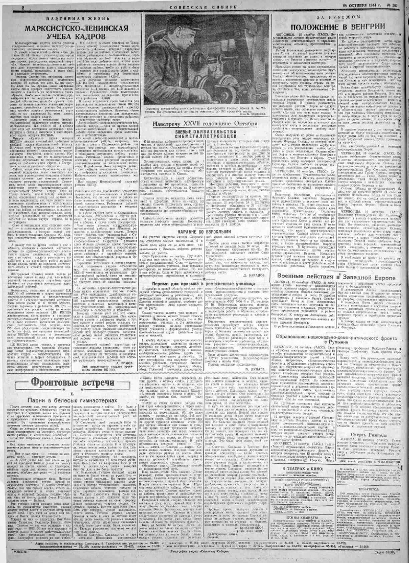 1944, № 209 (7656) (18 окт.). - 2 с.