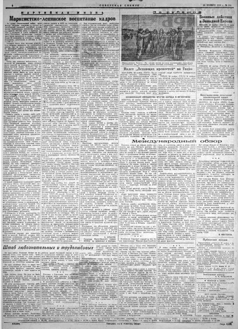 1944, № 235 (7682) (26 нояб.). - 2 с.