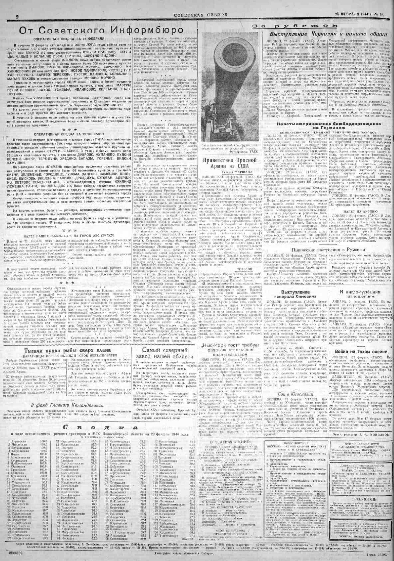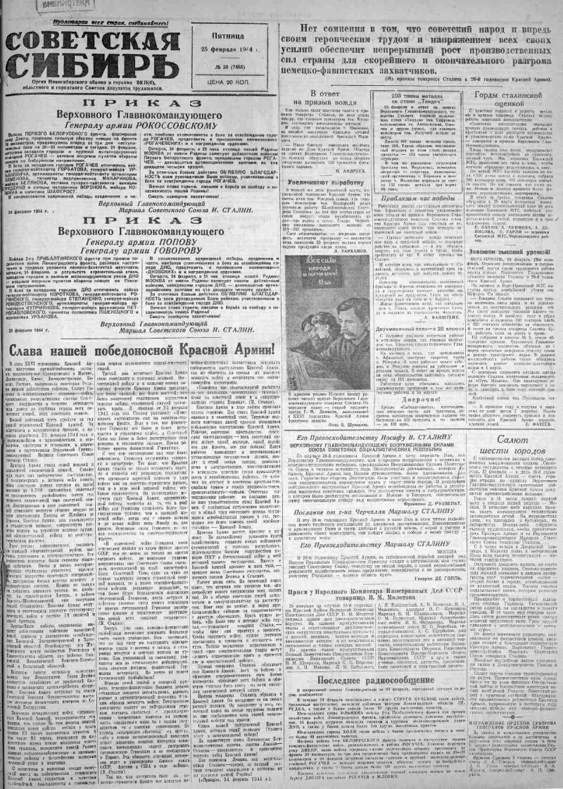 1944, № 39 (7485) (25 февр.). - 2 с.