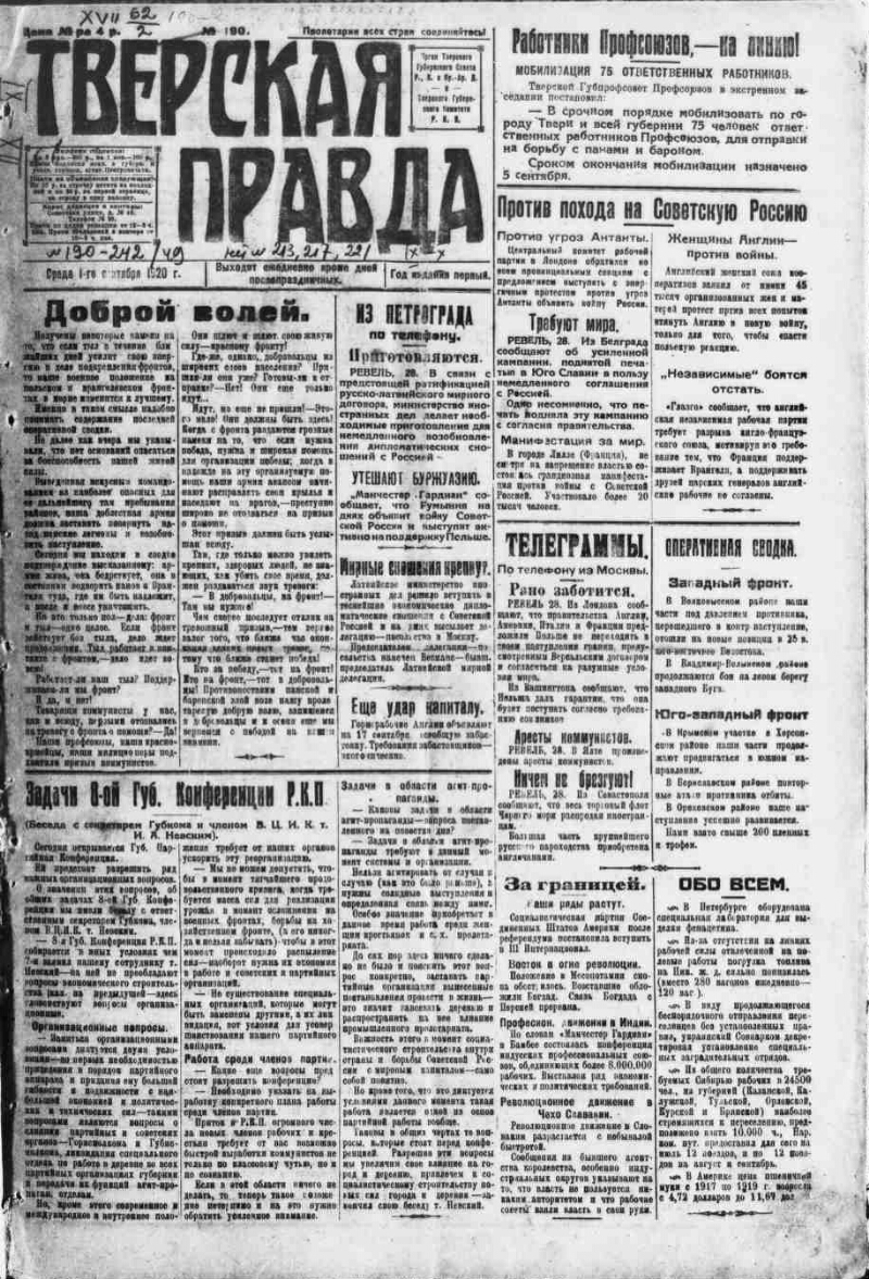 Тверская правда : орган губернского Совета Р. К. и К.-А. Д. и Тверского губернского комитета РКП
