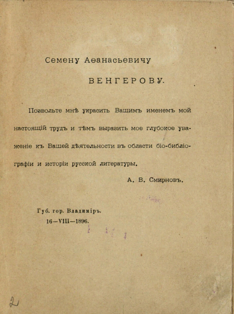 Уроженцы и деятели Владимирской губернии, получившие известность на различных поприщах общественной пользы : (Материалы для био-библиографического словаря) : Вып. 1-5/ Собр. и доп. А. В. Смирнов. - Владимир : тип. Губ. правл. , 1896-1917 |