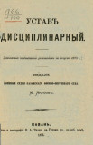 Автор Якубов М. Описание Россия. Военные уставы и наставления Устав дисциплинарный : Доп. позднейшими узаконениями по авг. 1875 г. / изд. воен. судья каз. военно-окр. суда М. Якубов. - Казань : М. Якубов, 1875. - 63 с. ; 16 см . ББК 68.434 Источник копии: РГБМесто хранения оригинала: РГБ Издательство М. Якубов Объект в каталогах Вооруженные силы в целом В коллекциях Государственные праздники России: история и современность → День Героев Отечества – 9 декабря → История праздника → Защита Отечества: на фронте и в тылу → Вооружённые силы → Коллекции → Русская императорская армия → Законодательство → Уставы, наставления, инструкции → Военное судопроизводство, дисциплинарные уставы и уставы о наказаниях
