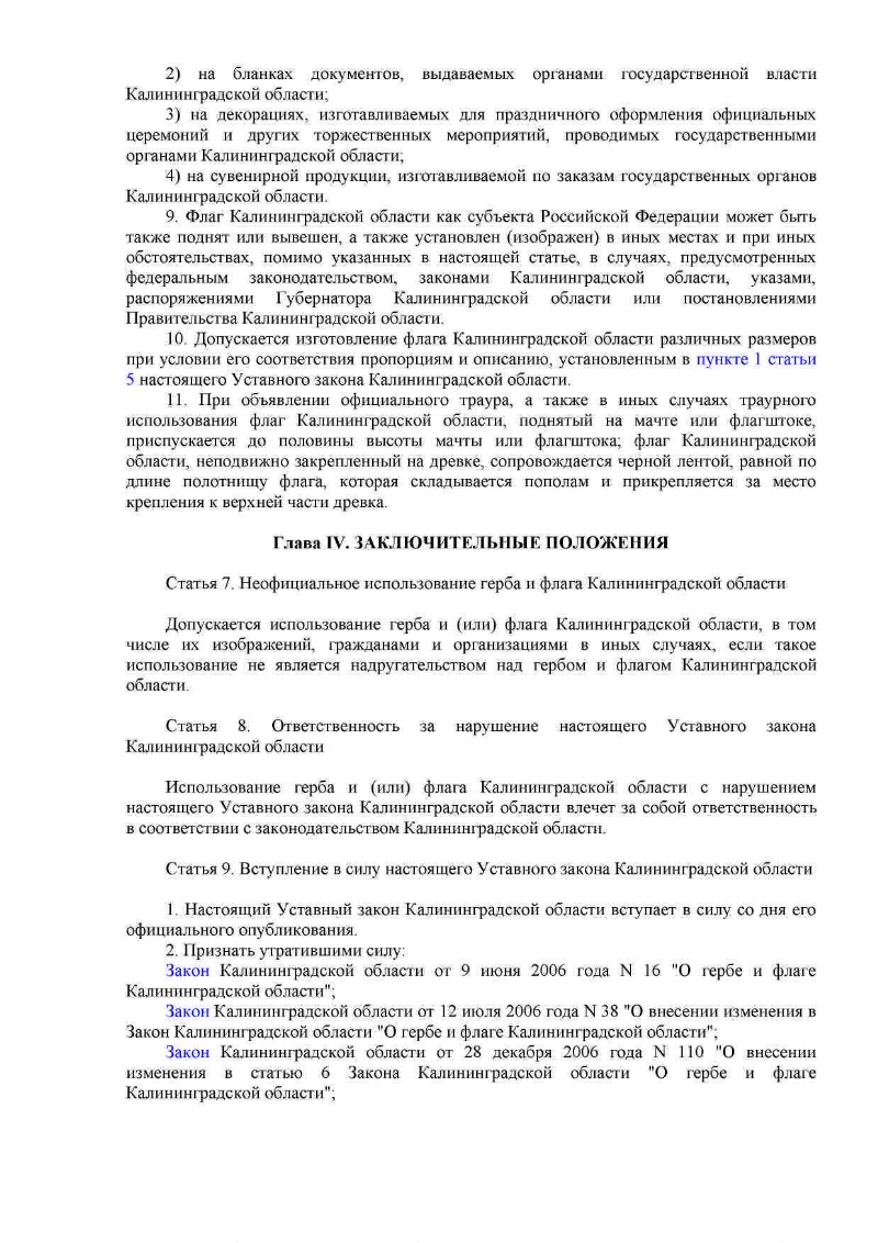 Уставный закон Калининградской области "О гербе и флаге Калининградской области" №440 от 04.05.2010. - 2010