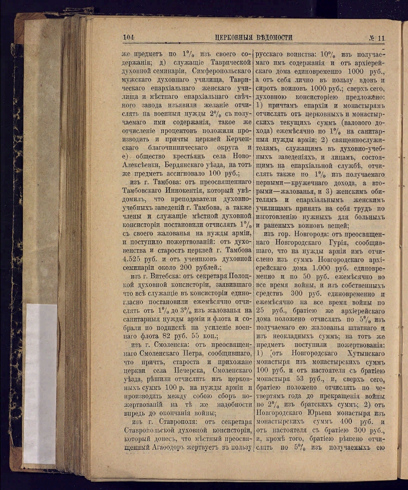 Церковные ведомости, издаваемые при Святейшем правительствующем Синоде : еженедельное издание с прибавлениями. - Санкт-Петербург, 1888-1918. - Выходит в 2-х частях: официальная и неофициальная. Неофициальная часть выходит под заглавием: Прибавления к Церковным ведомостям. За 1915-1916 гг. приложение к газете: Приходский листок. Заглавие: 1888-1917 № 8, 1918 № 1-3/4 Издаваемые при Святейшем правительствующем Синоде. Еженедельное издание с прибавлениями ; 1917 № 9/15-48/49 ... Еженедельное издание ; 1918 № 5-19/20 Издание православной русской церкви. Еженедельное издание с прибавлениями ; 1918 № 21/22 Издание православной русской церкви. Издание с прибавлениями ; 1918 № 23/24 Издание православной русской церкви. Издательство: 1918 № 1-3/4 Издательский совет при Святейшем Синоде ; 1918 № 5-23/24 Издательский совет при Священном Синоде. Приложения: Приходское чтение ; Определения Синода, молитвы, листовки, воззвания и т.п. : 101 брошюра. Алфавитно-предметный указатель к официальной части "Церковных ведомостей" за 1888-1897 годы : приложение к журналу. Санкт-Петербург, 1899. - Алфавитно-предметный указатель к официальной части "Церковных ведомостей" за 1898-1910 годы : приложение к журналу ... 1911, № 1-46. Санкт-Петербург, 1911.