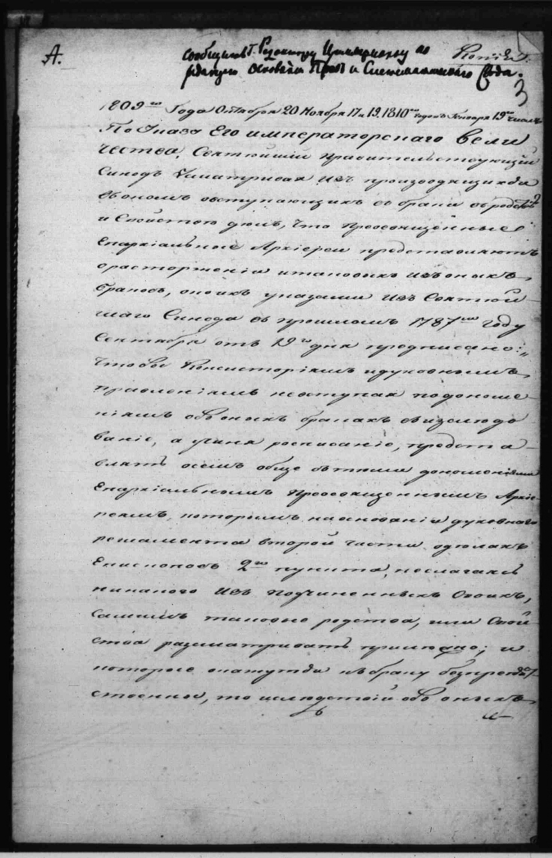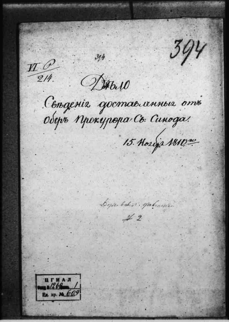 | Примечания | Дела, присланные из Гос. Совета, Сената и министерств в Комиссию на консультацию Оригинальный заголовок дела: Сведения, доставленные от обер-прокурора Св. Синода : 15 ноября 1810 г. Рукописный текст. Чернила |