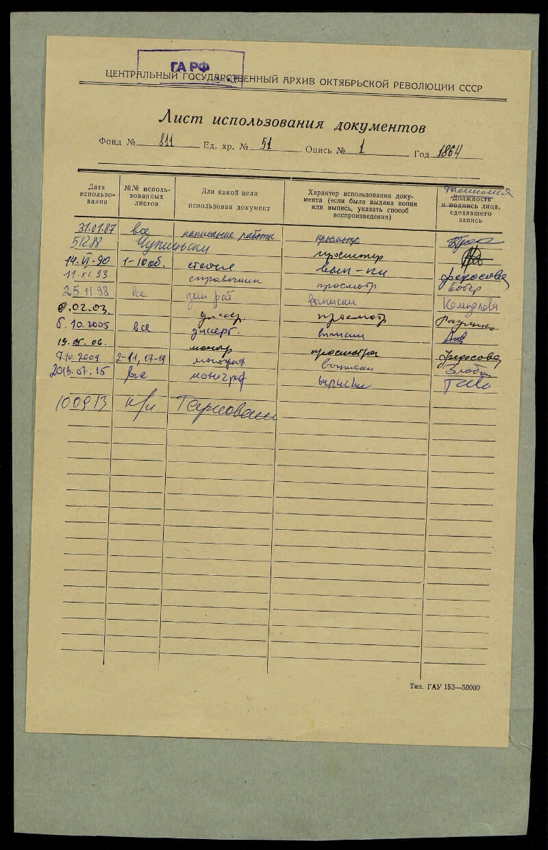 | Шифр хранения | ГА РФ. 811 / 1 / 51 |