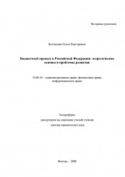 Бюджетный процесс в Российской Федерации: теоретические основы и проблемы развития : автореф. дис. на соиск. учен. степ. д-ра юрид. наук : специальность 12.00.14 / Болтинова Ольга Викторовна ; [Моск. гос. юрид. акад.]. - Москва, 2008. - 42, [1] с. ; 21. - Библиогр.: с. 40-43 (35 назв.) и в подстроч. примеч. - 200 экз.