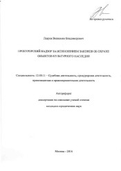 Прокурорский надзор за исполнением законов об охране объектов культурного наследия : автореферат дис. ... кандидата юридических наук : 12.00.11 / Лавров Вениамин Владимирович ; [Место защиты: Акад. Генер. прокуратуры РФ]. - Москва, 2016. - 28 с.
