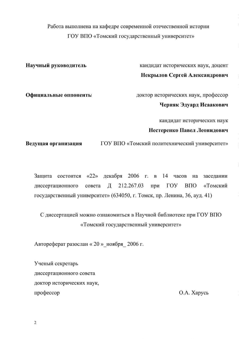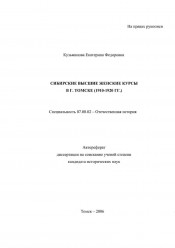 Сибирские высшие женские курсы в г. Томске : (1910 - 1920 гг.) : автореферат диссертации на соискание ученой степени кандидата исторических наук : специальность 07.00.02 / Кузьминова Екатерина Федоровна ; [Том. гос. ун-т.]. - Томск, 2006. -28 с. ; 21 см.. - Место защиты: Том. гос. ун-т. - Список работ авт.: с. 27-28 (8 назв.). - Библиогр. в подстроч. примеч. . -100 экз.