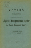 Устав общества под названием "Русская Монархическая партия" (или "Русский Монархический Союз") : [рассмотрен 4 мая 1909 г.]. - Москва : Русская Печатня, 1909. - 23 с. ; 22 см. - Без тит. л. Описано по обл.