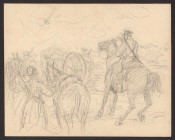 Фронтовая зарисовка, посвященная боевому подвигу старшего унтер-офицера лейб-гвардии Кирасирского полка Н. М. Грицая [Изоматериал] : [рисунок] / [художник] Грабовский. - [1914]. - Бумага, карандаш ; 24х30 см. - (Галерея Георгиевских кавалеров Первой мировой войны). - Режим доступа: интернет-портал Президентской библиотеки. Электронная репродукция (2 файла, 300 dpi, JPEG, 13 МБ). На оборотной стороне инвентарные номера и надпись карандашом: Никифор Матвеевич Грицай. Л-гв. Кирасирск. Ея Вел. Мар. Феод. полка. 1318 (Грабовский), а также описание подвига Н. М. Грицая. Копирование пользователями не разрешается. Материалы Трофейной комиссии в собрании Военно-исторического музея артиллерии, инженерных войск и войск связи. На рисунке изображен фрагмент боя, за проявленное мужество в котором старший унтер-офицер лейб-гвардии Кирасирского Ее Величества государыни императрицы Марии Феодоровны полка Никифор Матвеевич Грицай был награжден Георгиевским крестом 4-й степени