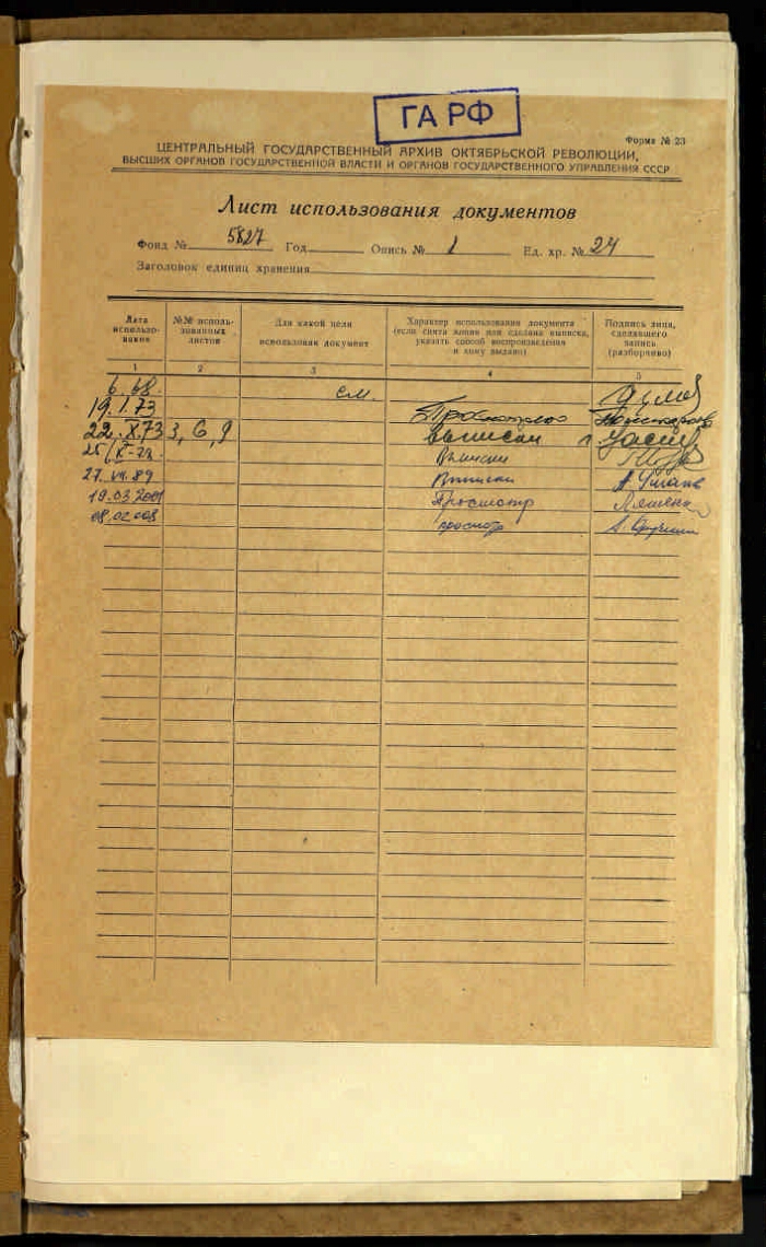 | Шифр хранения | ГА РФ. 5827 / 1 / 24 |