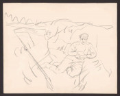 Фронтовая зарисовка, посвященная боевому подвигу старшего унтер-офицера лейб-гвардии 1-го стрелкового Его Величества полка Г. Я. Митусова [Изоматериал] : [рисунок] / [художник] Харитонов. - [Между 1914 и 1917]. - Бумага, карандаш ; 24х30 см. - (Галерея Георгиевских кавалеров Первой мировой войны