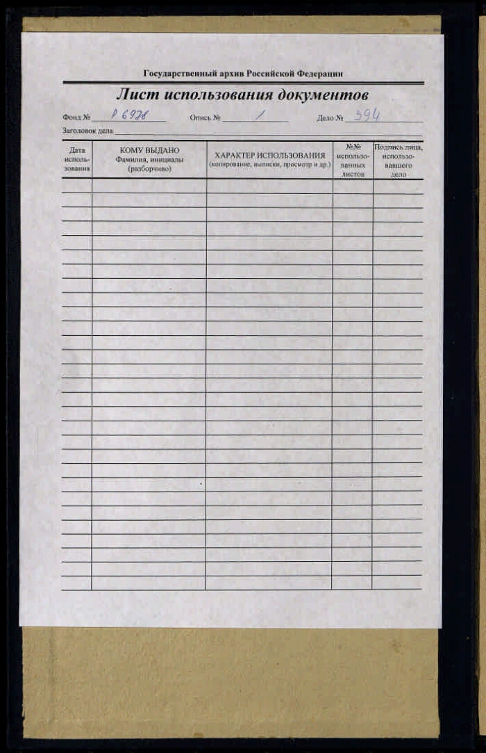 Шифр хранения ГА РФ. 6978 / 1 / 394