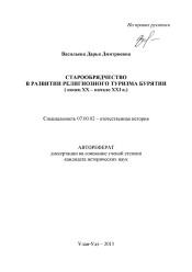 Старообрядчество в развитии религиозного туризма Бурятии : конец XX - начало XXI в. : автореферат дис. ... кандидата исторических наук : 07.00.02 / Васильева Дарья Дмитриевна ; [Место защиты: Бурят. гос. ун-т]. - Улан-Удэ, 2013. -26 с.. -