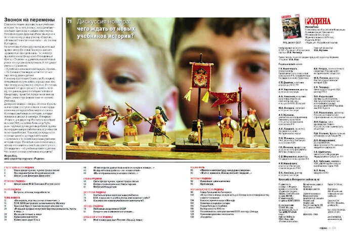 Родина : исторический научно-популярный журнал. - 1989, № 1 -. -Москва : Редакция "Российской газеты", 1989-. - Режим доступа: интернет-портал Президентской библиотеки. Подзаголовок: 1989 Ежемесячный общественно-политический, научно-популярный иллюстрированный журнал: Издание газеты "Правда" ; 1990 № 1-6 Ежемесячный общественно-политический научный популярный иллюстрированный журнал Верховного Совета и Совета Министров РСФСР ; 1990 № 7 - 1991 Ежемесячный общественно-политический, научно-популярный иллюстрированный журнал ; 1992 № 1-2 Российский популярный исторический журнал ; 1992 № 3 - 1995, 4 Российский историко-публицистический журнал ; 1995, 5 - 1996, № 1 Российский исторический журнал ; 1996, № 2 - 2015, № 10 Российский исторический иллюстрированный журнал (в части вып.: Российский исторический журнал) ; 2015, № 11 - исторический научно-популярный журнал. В надзаголовке: 1990 № 7 - 1992 № 1 Верховный Совет РСФСР ; 1992 № 2 - 1993 № 7 Верховный Совет Российской Федерации ; 1993, № 10 - 1994 № 4 Совет Министров-Правительство РФ ; 1994 № 5 Правительство РФ ; 1994 № 6-8 Правительство Российской Федерации ; 1994 № 9 - 1998 Правительство Российской Федерации, Администрация Президента Российской Федерации. Издательство: 1989 Правда ; 1990-1991, 1992 № 2 Советская Россия ; 1992 № 1, 3-10 Русская книга; 2014, № 4 - Редакция "Российской газеты" (в части вып. отсутствует). Выходит ежемесячно. - Основан в 1879 г.. - Оригинальный ресурс размещен на сайте журнала "Родина" (https://rodina.rg.ru/).