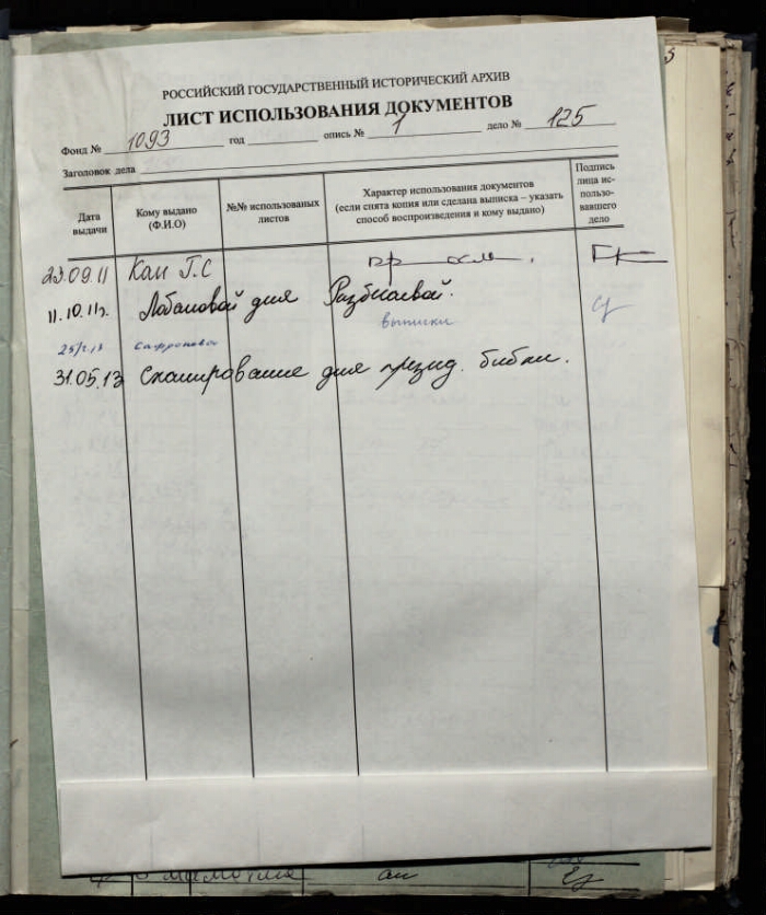 | Шифр хранения | РГИА. 1093 / 1 / 125 |