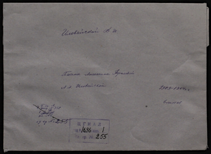 | Примечания | Заголовок дела также: Письма Антонины Фроловой А. А. Иловайской. 1903 г. - 1904 г. Рукописный текст. Чернила В конверте |