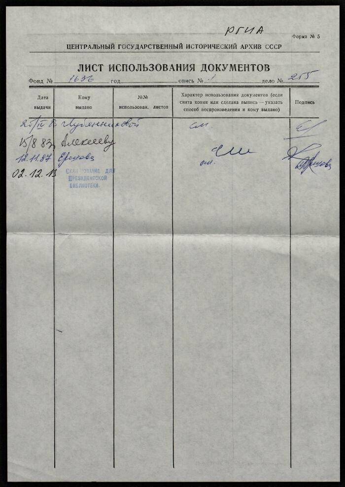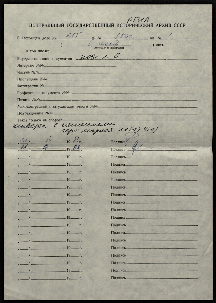 | Организация-создатель записи | РГИА |