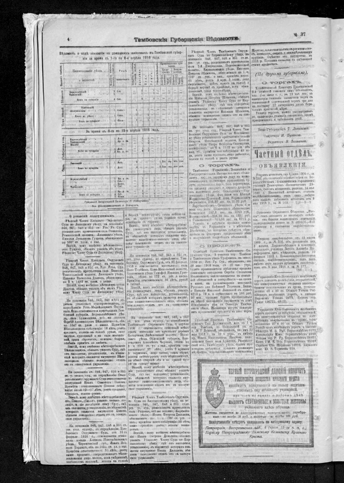 1916, № 37 (18 мая). - 1916. -4 с. : табл.. - Выходят по средам и субботам. Экз.: без обл.