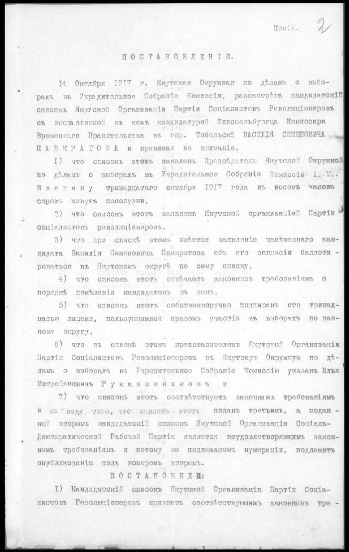 Материалы Якутской окружной по делам о выборах в Учредительное Собрание Комиссии о подготовке выборов