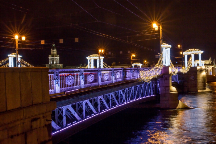 Новогодний Петербург. Дворцовый мост : [фотография] / фото А. А. Кассировой. - Электронные данные (1 файл : 12,4 МБ). -Санкт-Петербург, 2017. - Режим доступа: интернет-портал Президентской библиотеки. Копирование пользователями не разрешается.