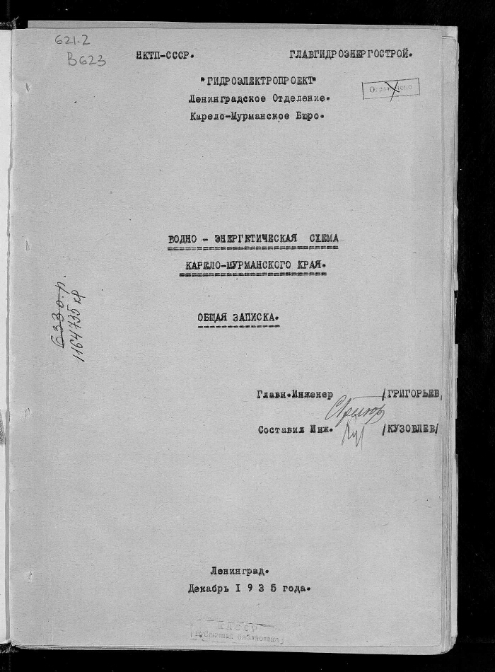I. СССР. Главное управление гидроэнергостроительства. II. "Гидроэлектропроект", трест (Москва). Ленингр. отд-ние. III. СССР. Народный комиссариат тяжелой промышленности.1. Территория (коллекция). 2. Территория России: Мурманская область (коллекция). 3. Территория России: Карелия, Республика (коллекция). 4. Гидроэнергетические ресурсы -- СССР -- Европейская часть -- Север. |